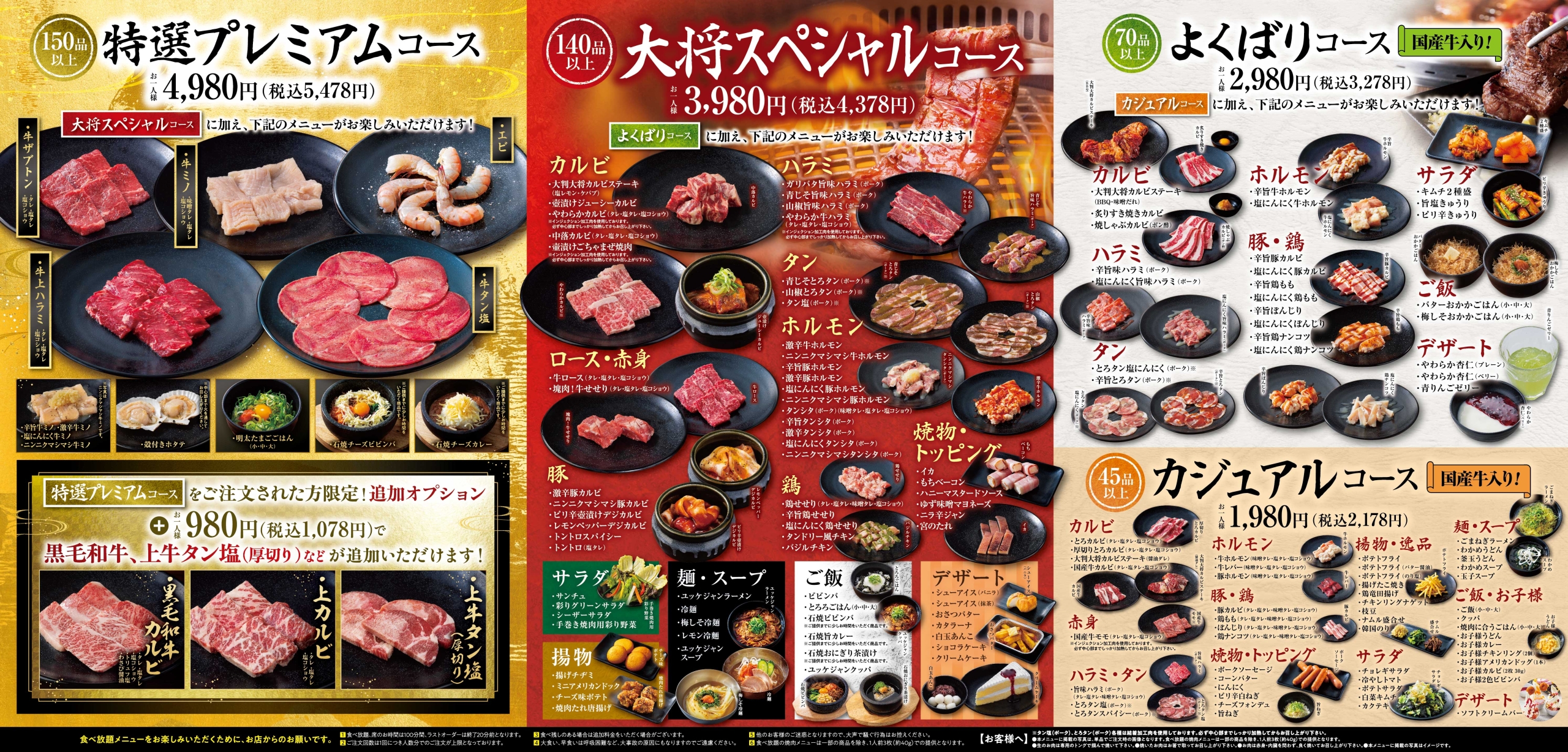 「大判大将カルビステーキ」は、大判サイズを活かし、まるで屋外でBBQを楽しんでいるかのような気分を味わえるたれでご提供。「とろタン塩(ポーク)」や鶏肉メニューは定番から変わり種まで、新感覚なたれを取り入れ、バリエーションを強化しております。