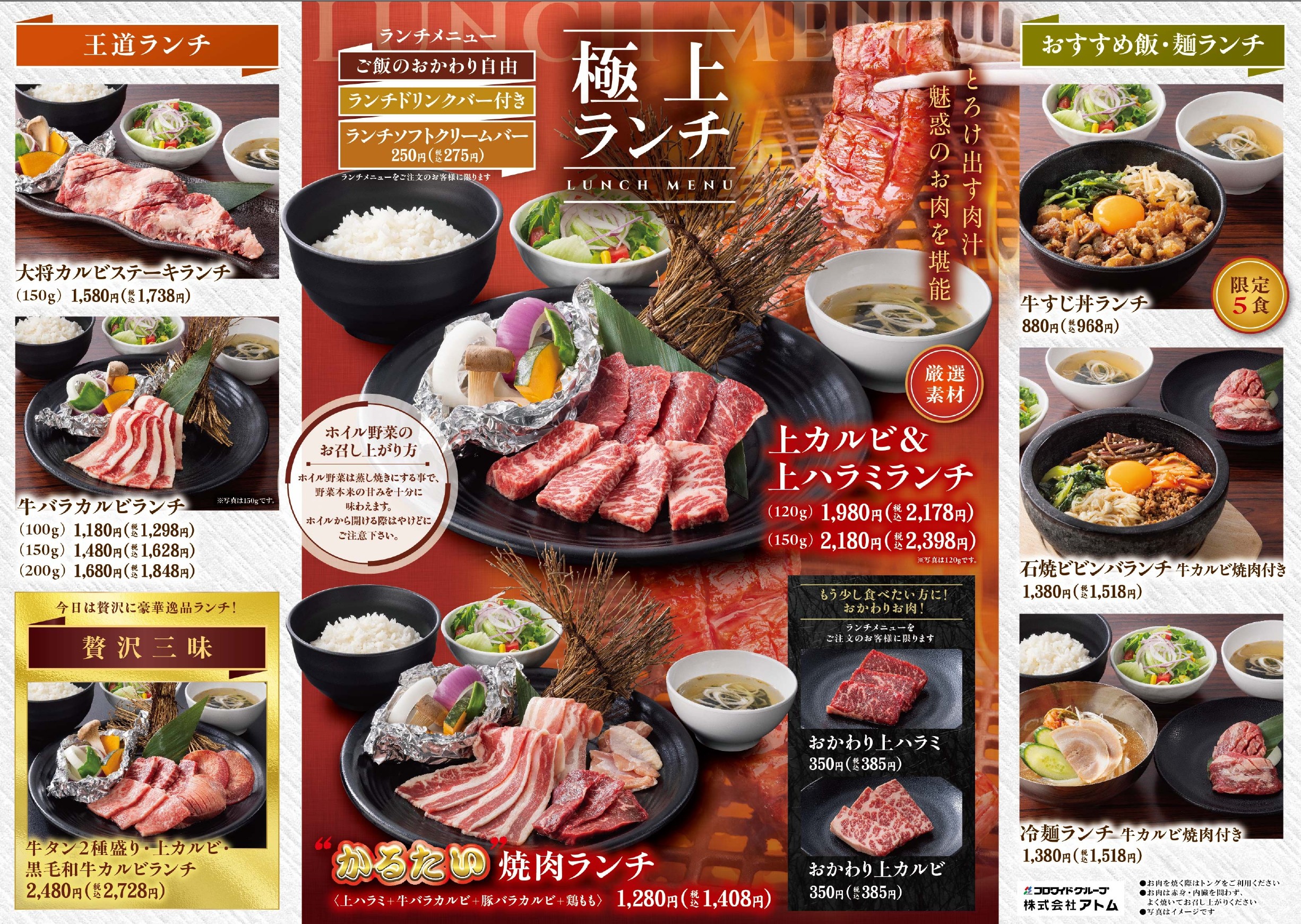 カルビ大将TOPメニューランチ定食メニュー ランチ定食メニューmenu 食べ放題コース一覧 【限定】東海エリア(愛知・三重・岐阜) アラカルト ランチ定食メニュー 【食べ放題】ランチ食べ放題コース 【ドリンクメニュー】 アレルゲン情報 アレルゲン情報(高山店限定) メニュー 一覧へ戻る